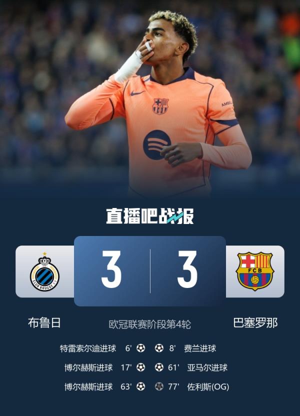 韧性拉满,流量也拉满!巴萨客平布鲁日,经历三度落后三度扳平!